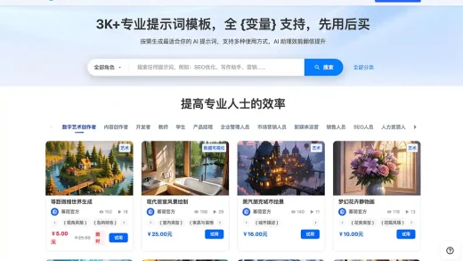 多样化提示词库: 2Moons 平台汇集了海量针对不同AI绘画工具定制的高质量提示词,这些提示词涵盖了各种风格、主题、场景以及技术细节,能够引导用户从多元视角出发,挖掘前所未有的创作思路。无论是追求细腻逼真的写实风格,还是热衷于探索超现实主义的梦幻世界,用户都能在平台上找到契合自己创意需求的提示词。