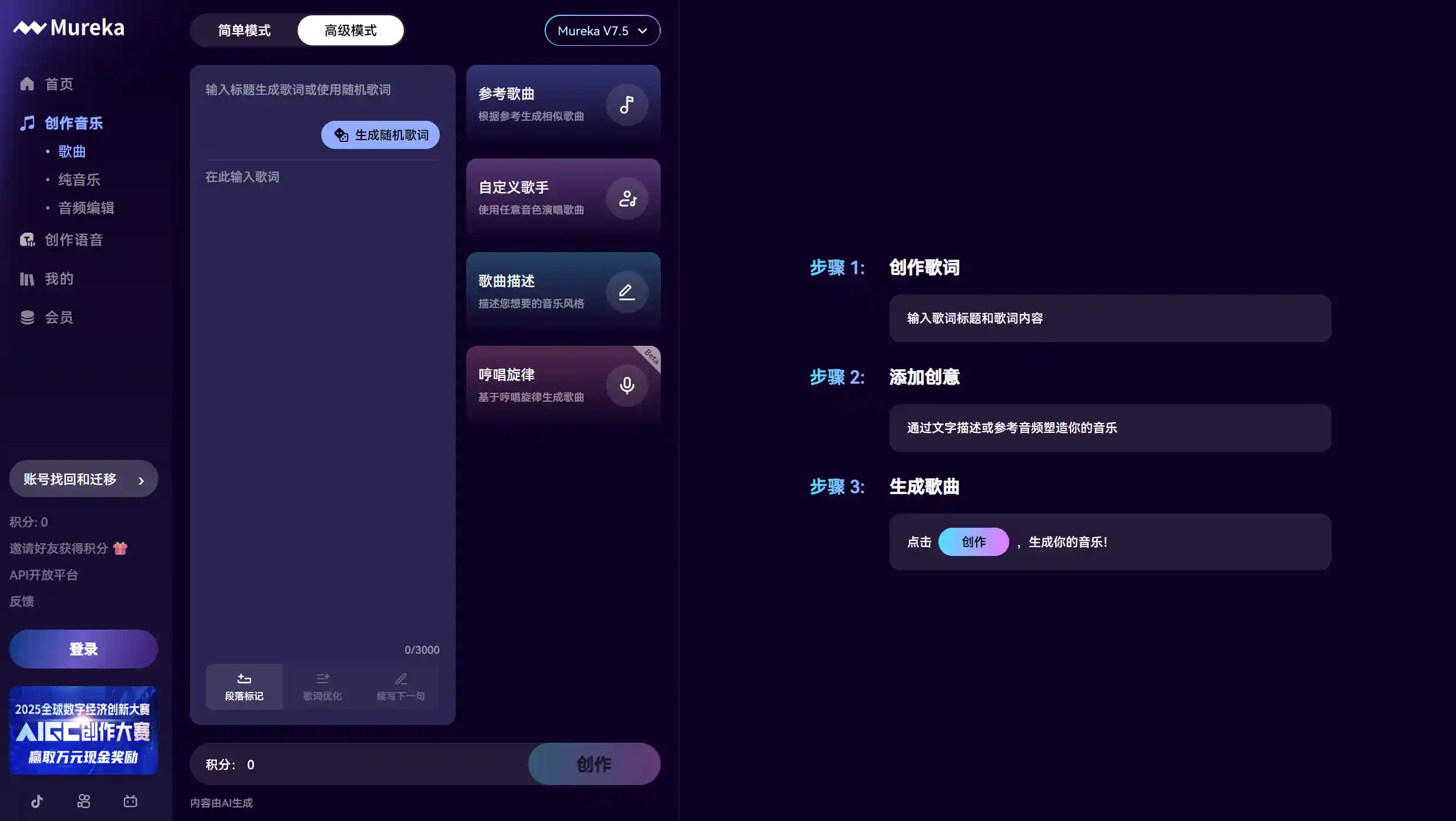 Mureka是中国科技企业昆仑万维倾力打造的标杆级 AI 音乐生成平台:www.mureka.ai。其名称由 “Music” 与象征灵感迸发的 “Eureka” 结合而成,寓意精准捕捉创作灵感并将其快速转化为个性化音乐作品。作为全球首个打通 “AI 创作 – 专业编辑 – 版权变现” 全链条的音乐智能工具,Mureka 自 2024 年 4 月发布初代模型、8 月正式上线平台以来,仅用一年时间便实现了从 “单一工具” 到 “生态级平台” 的价值跃迁,不仅改写了 AI 音乐领域由海外产品主导的格局,更推动行业从 “实验室技术” 迈向 “全民创作时代”。