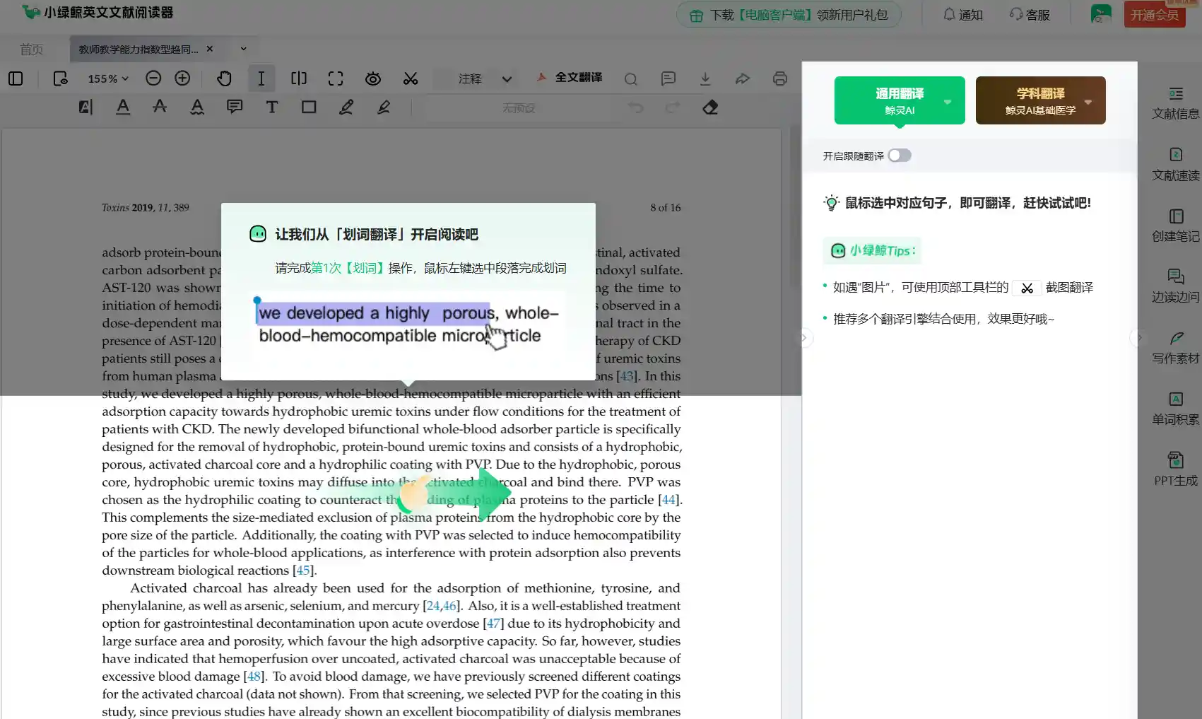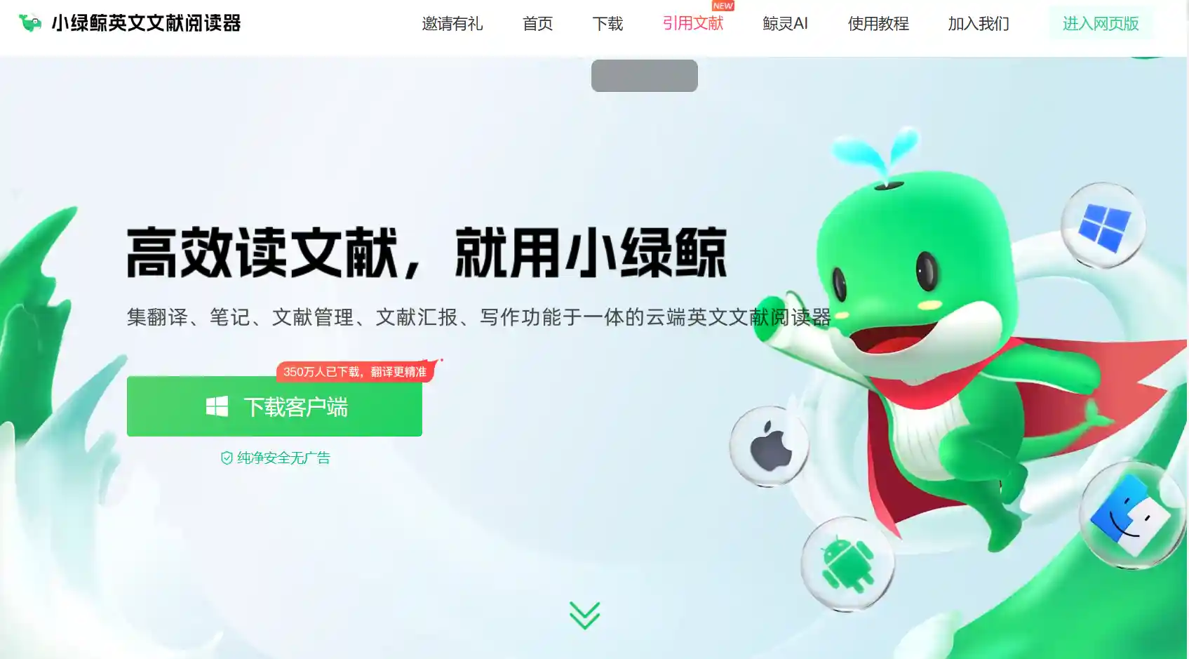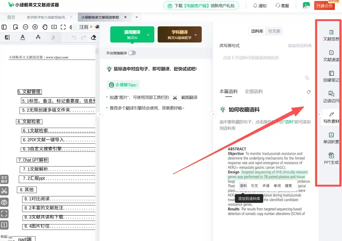 小绿鲸是一款集翻译、笔记、文献管理、文献汇报、写作功能于一体的云端英文文献阅读器。