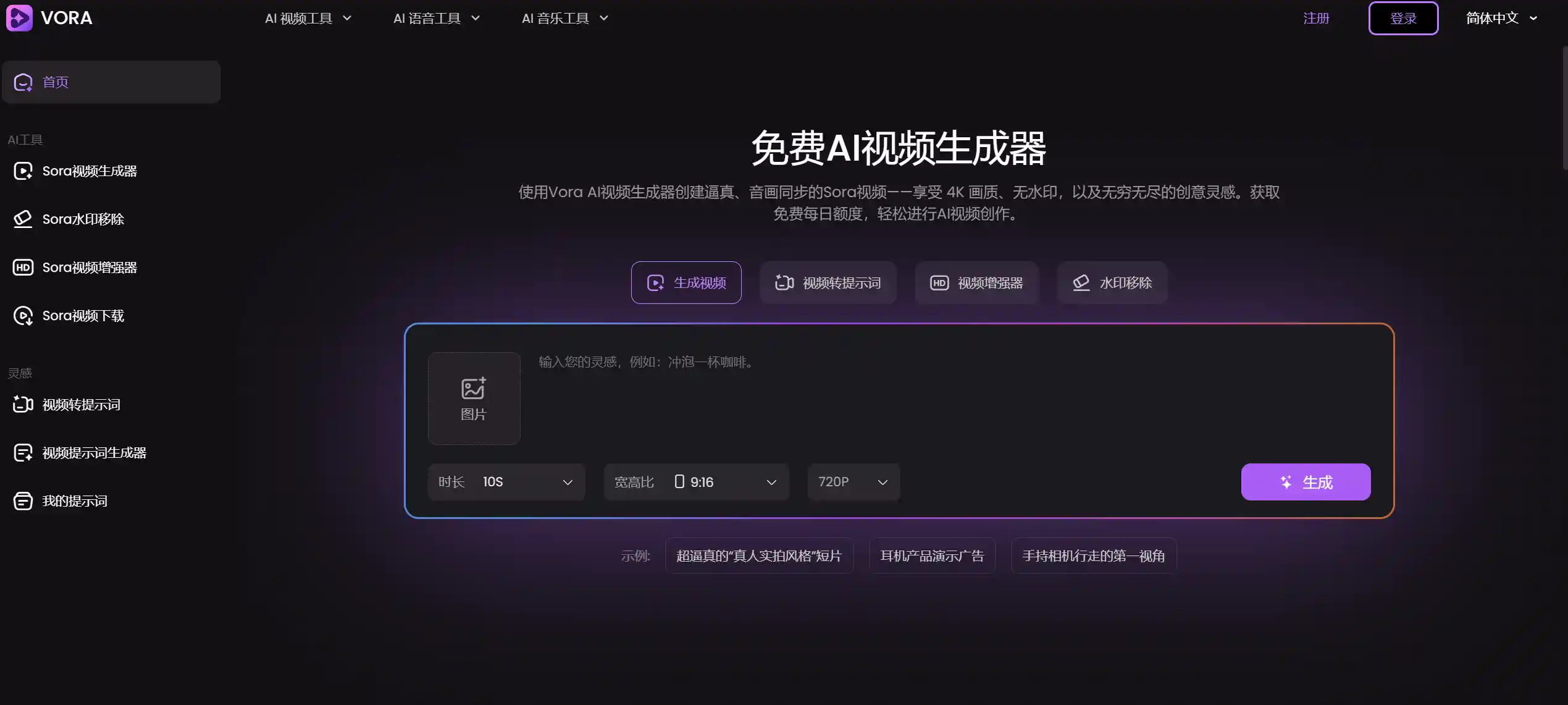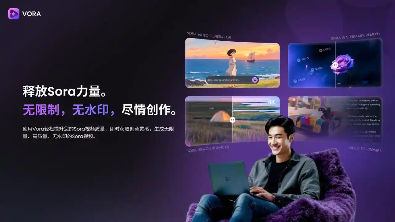 Vora是一款增强Sora视频的AI视频生成器,帮助用户更好的生成Sora视频,同时节约时间和金钱。Vora支持通过文本描述或图片,创建带声音、高清无水印的Sora视频,没有生成次数限制。