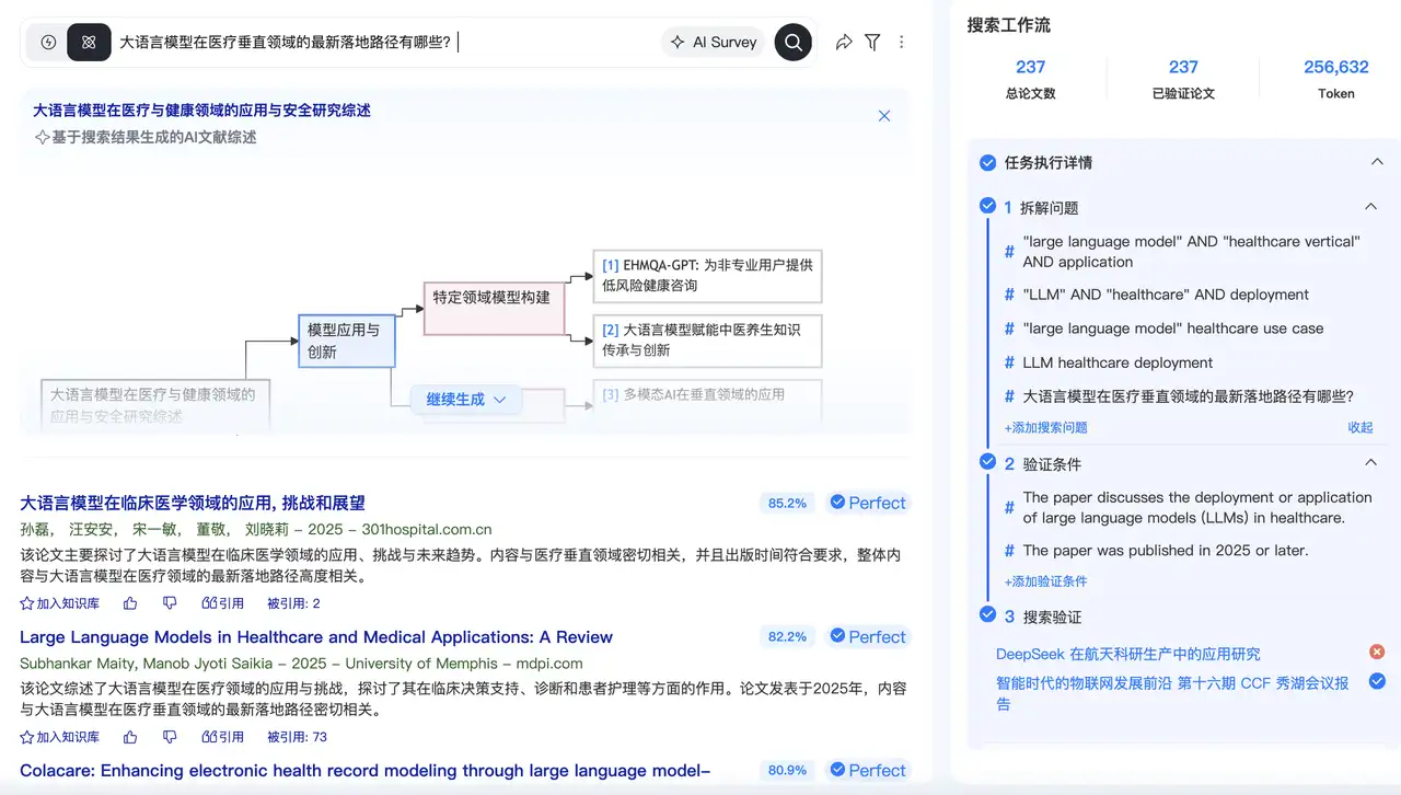 不同于传统的关键词匹配,切问采用先进的自然语言处理(NLP)技术。你可以像咨询导师一样提问,如“大语言模型在医疗垂直领域的最新落地路径有哪些?”