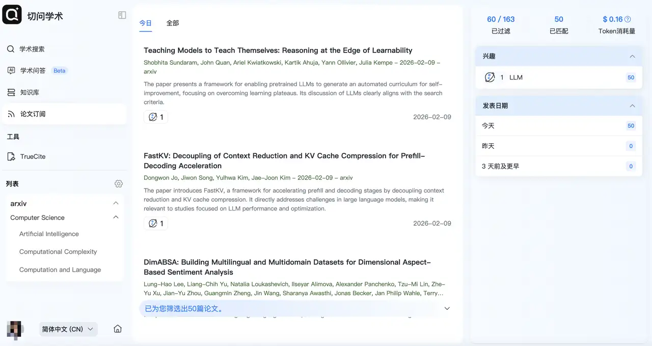 切问通过配置细分的研究领域与筛选标准,构建你的科研竞争优势。主动将最新、最相关的突破与趋势推送到你的信息流中,助你始终处于所属领域的最前沿。